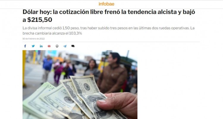 La divisa informal cedió 1,50 peso, tras haber subido tres pesos en las últimas dos ruedas operativas. La brecha cambiaria alcanza el 103,3%