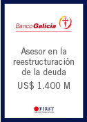 - Participamos en la reestructuración de una importante entidad financiera, convirtiendose en la más importante reestructuración privada de deuda por USD 1.4 billones.