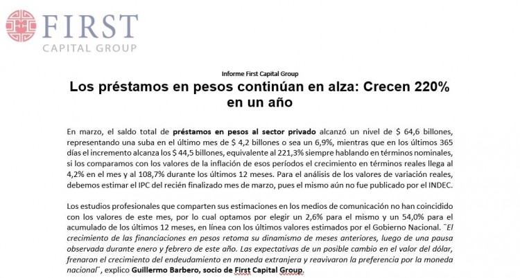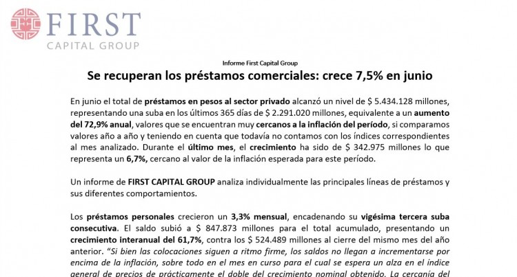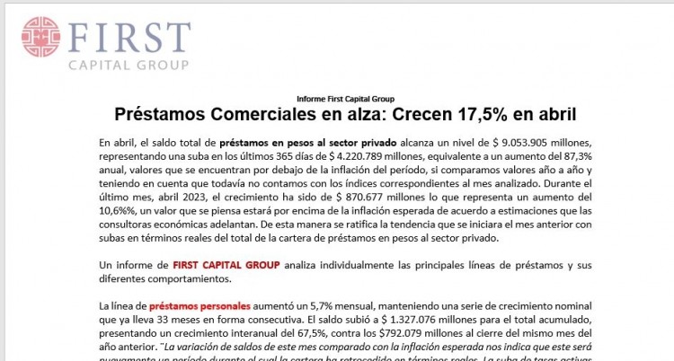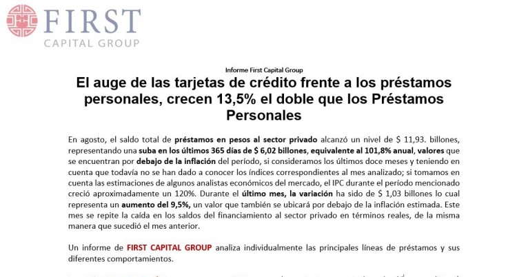 +FIRST CAPITAL GROUP: Crecen 54,27% los créditos personales