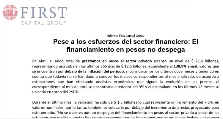 +Informe First Capital Group: Freno de mano al financiamiento de las PYMES