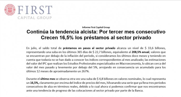 +Continúa la tendencia alcista: Por tercer mes consecutivo Crecen 16,5% los préstamos al sector privado