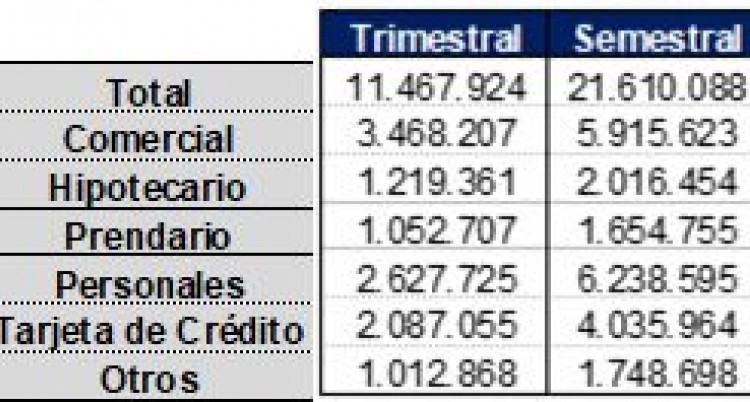 El total de préstamos en moneda nacional alcanzó la cifra de 1,37 billones de pesos, con una expansión mensual de 50 mil millones aproximadamente, lo que representa un crecimiento del orden del 3,8% en relación a los saldos del mes anterior.