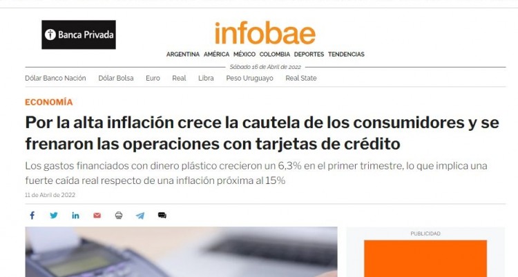 De acuerdo con un informe de First Capital Group, al cierre de marzo las operaciones con tarjetas de crédito alcanzaron los $1.344.034 millones ($1,34 billón), lo cual significa un aumento de un 5,7% respecto al cierre del mes pasado, unos $72.530 millones por encima de febrero y de la inflación esperada. Sin embargo, el crecimiento interanual llegó al 39,3% (contra una inflación por encima del 50%), y el del último trimestre del 6,3%, valores por debajo de la inflación de ambos período.
