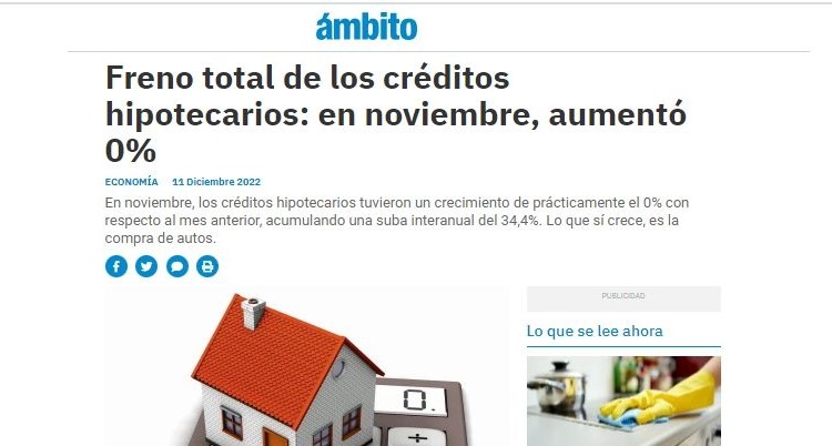 Freno total de los créditos hipotecarios: en noviembre, aumentó 0%