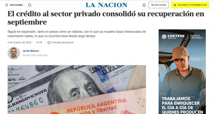 El crédito al sector privado consolidó su recuperación en septiembre