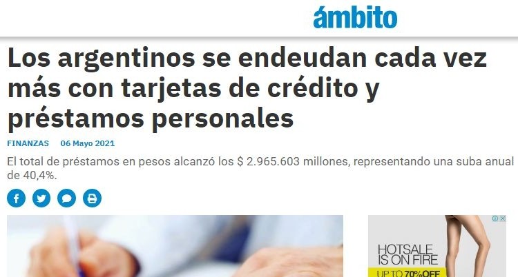 Los argentinos se endeudan cada vez más con tarjetas de crédito y préstamos personales