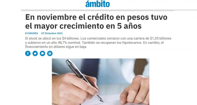 En noviembre el crédito en pesos tuvo el mayor crecimiento en 5 años