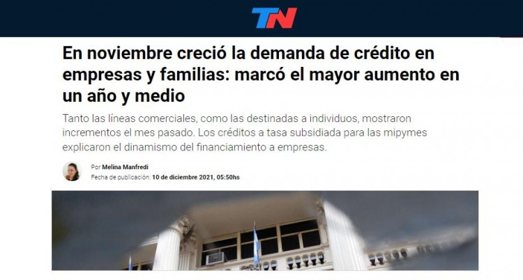 “De este modo, los préstamos otorgados a través de la línea aumentaron 13% respecto a fin de octubre. En cuanto a los destinos de estos fondos, alrededor del 84% del total desembolsado corresponde a la financiación de capital de trabajo y el resto a la línea que financia proyectos de inversión”, destacó el informe monetario mensual, que agregó que unas 198.000 empresas accedieron a esos préstamos.