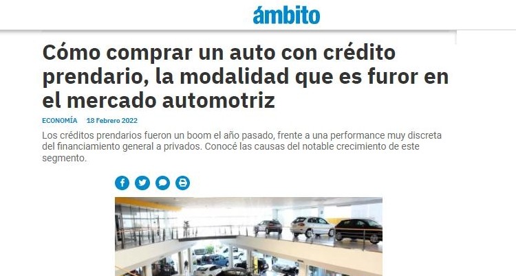 , comentó Barbero a Ámbito.Este tipo de préstamos se concede fundamentalmente para la compra de vehículos 0 km o usados, y funciona de la siguiente manera: el bien adquirido a partir del financiamiento, en este caso un auto, queda “prendado” a favor de la entidad que otorga el crédito como garantía, hasta la cancelación total del mismo. En ese lapso, el tomador del préstamo está impedido de vender el vehículo hasta tanto no abone la totalidad de las cuotas.