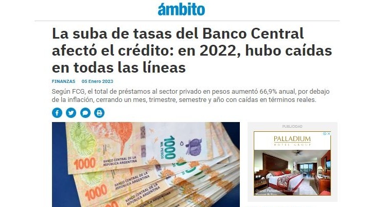La suba de tasas del Banco Central afectó el crédito: en 2022, hubo caÃdas en todas las lÃneas