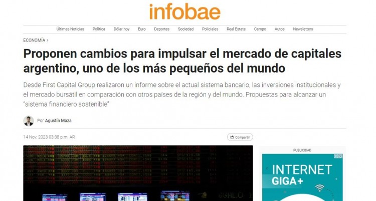 Desde First Capital Group realizaron un informe sobre el actual sistema bancario, las inversiones institucionales y el mercado bursátil en comparación con otros paÃses de la región y del mundo. Propuestas para alcanzar un “sistema financiero sostenibleâ€