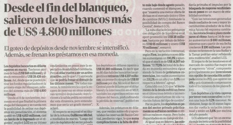 Desde el fin del blanqueo, salieron de los bancos más de US$ 4.800 millones