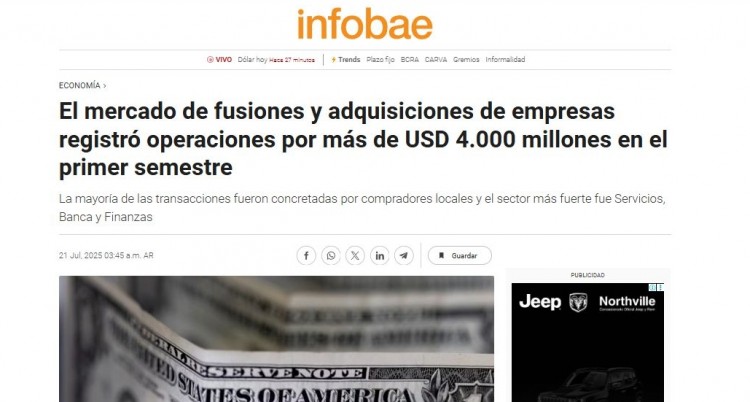 El mercado de fusiones y adquisiciones de empresas registró operaciones por más de USD 4.000 millones en el primer semestre